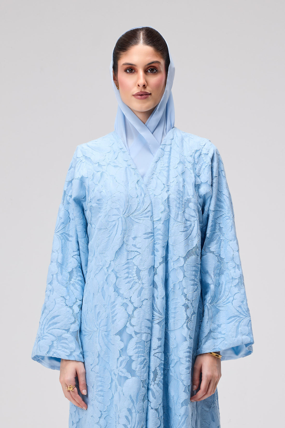 Soft silk jaquard coat style abaya suitable for daily wear.
