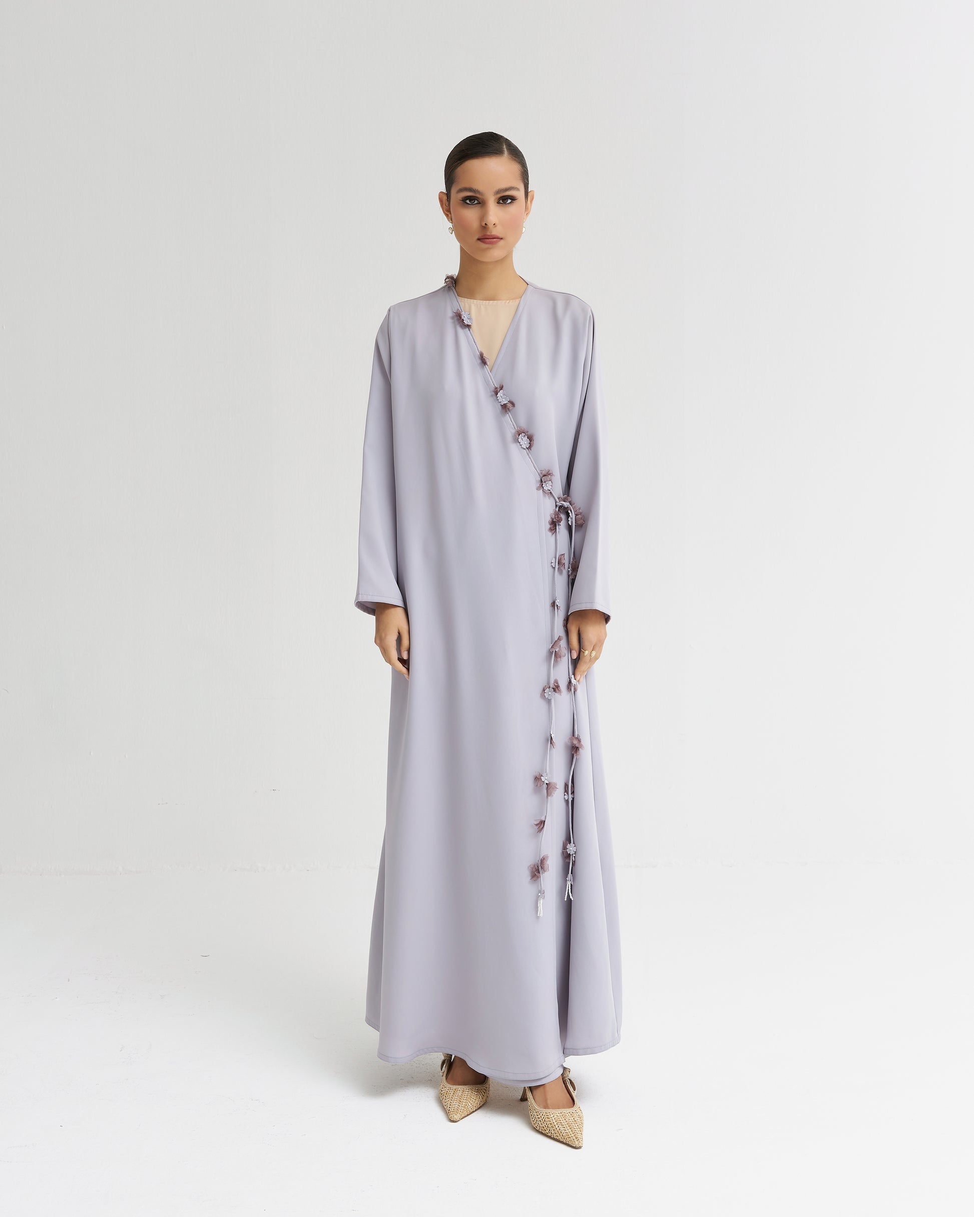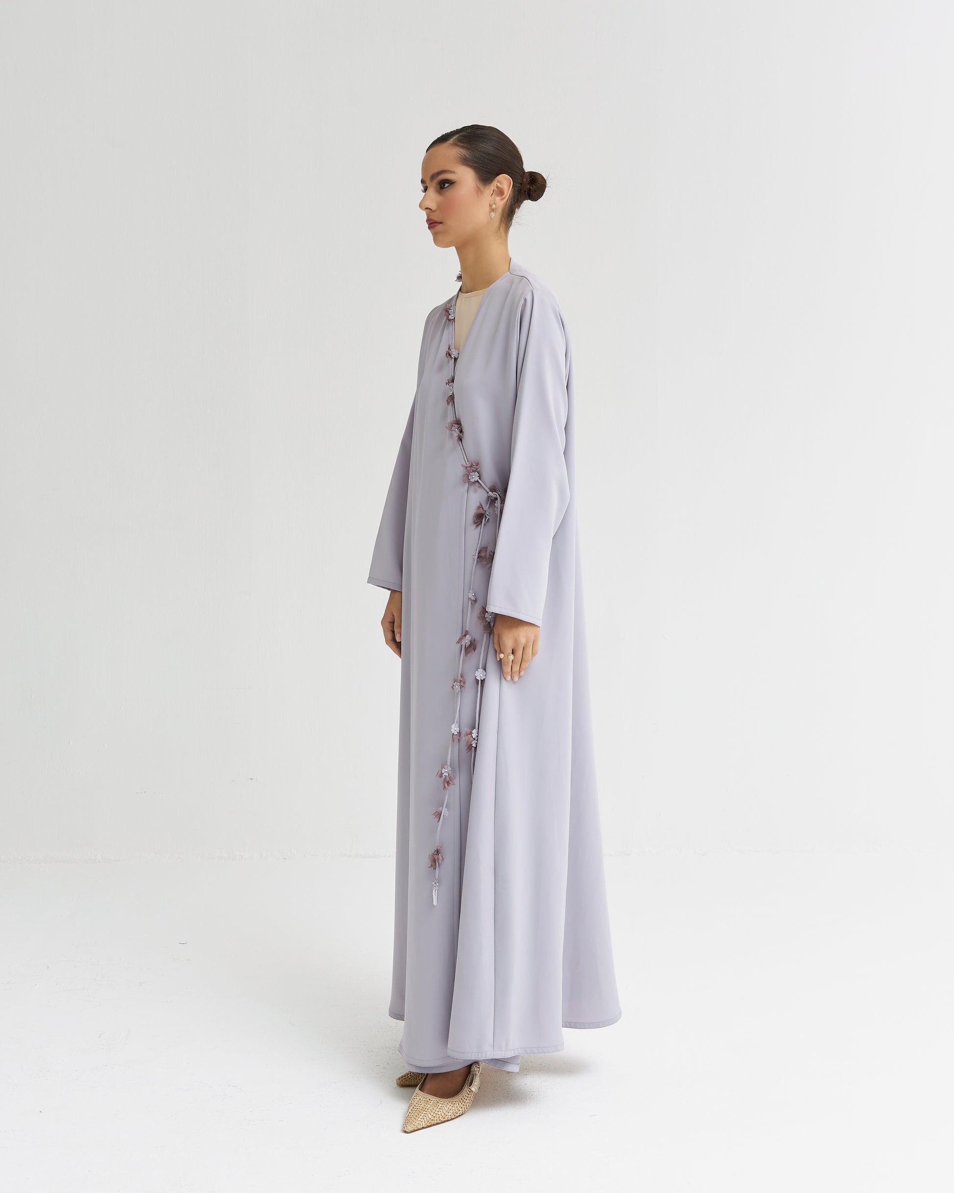 Classy Abaya featuring intricate details of hand embroidered 3D flowers