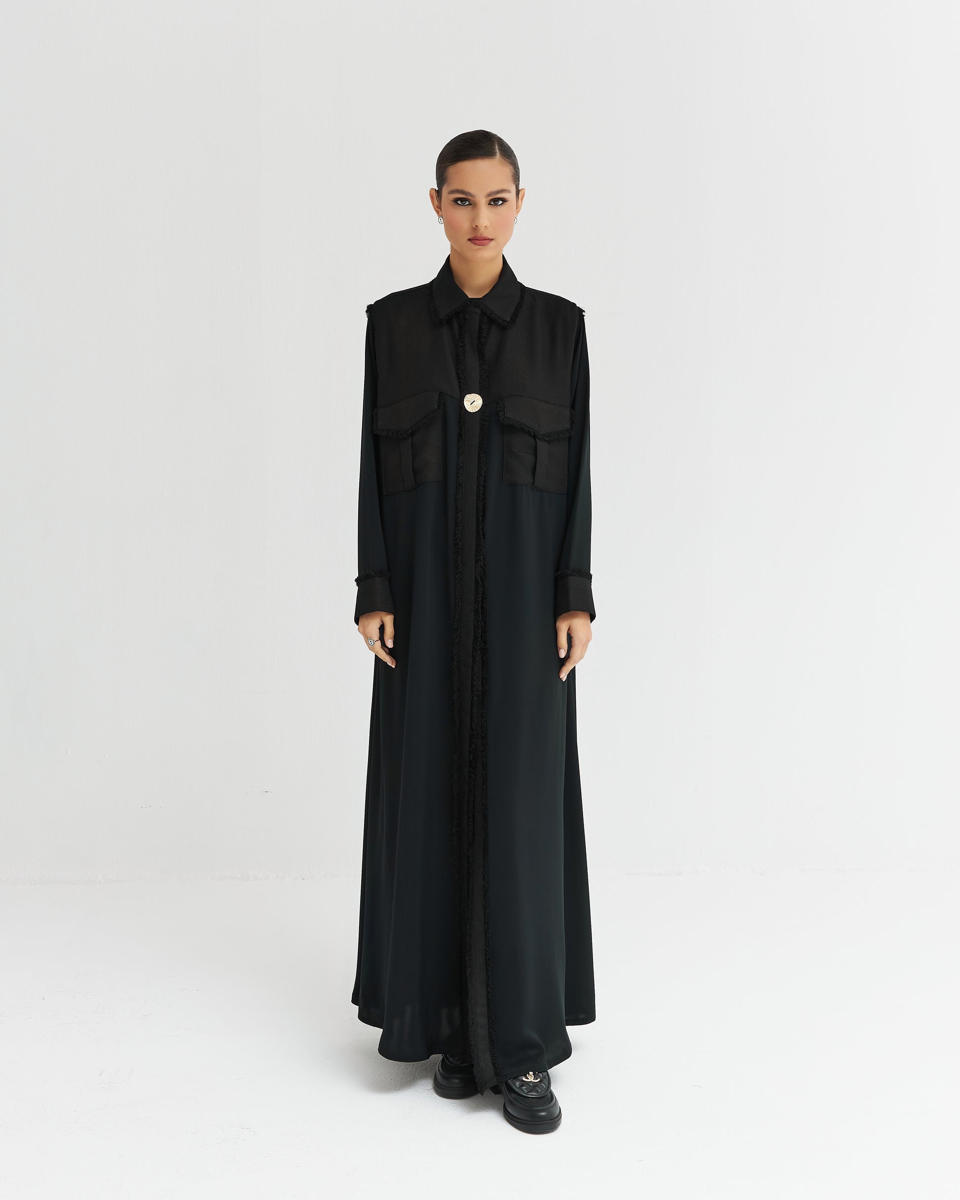 Chic abaya for all elegant ladies , featuring a formal style with a polished golden button detail